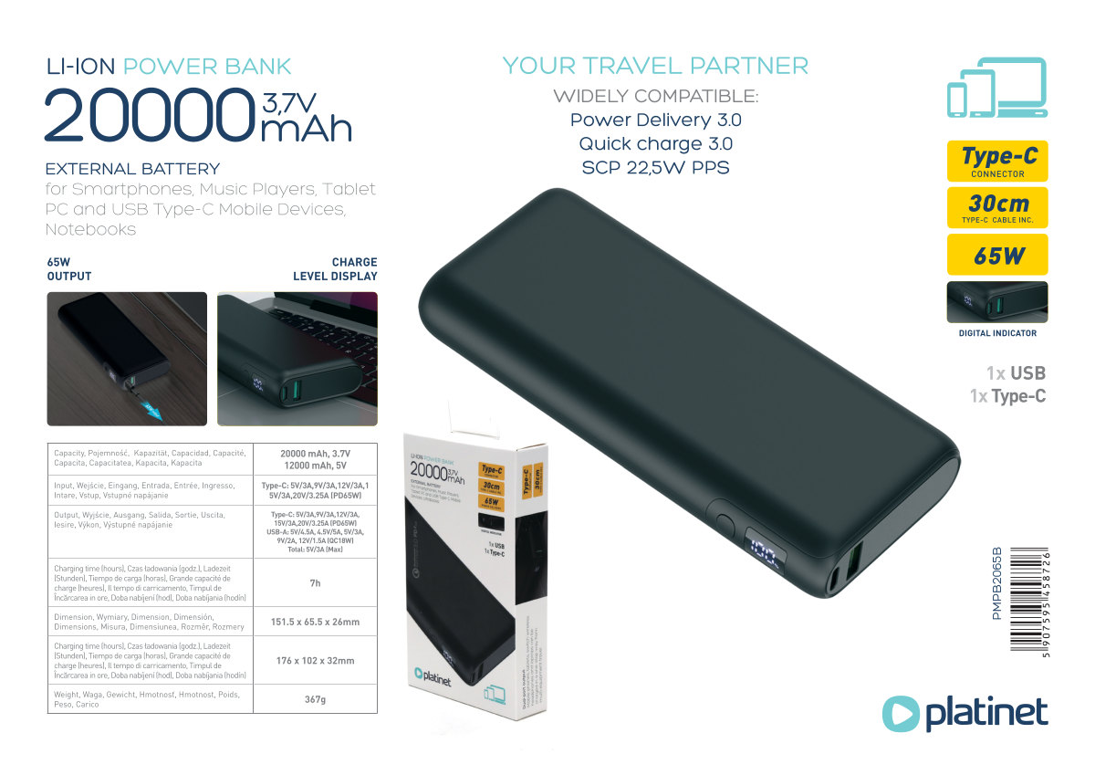 Kapacitet: 20000mAh pri 3,7V 3.0